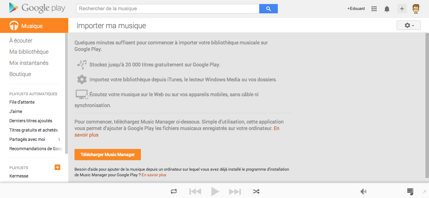 Arrive alors Google Play Music, le service de streaming et d’achat de musique de l’autre grande firme américaine. Outre ces services, Google propose de stocker pour vous gratuitement 20 000 titres.