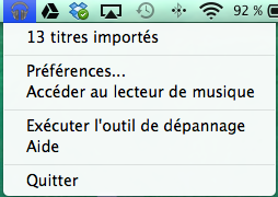 Et en cliquant dessus, vous pourrez régler les paramètres, suivre le nombre de titres importés mais aussi accéder au lecteur de musique.