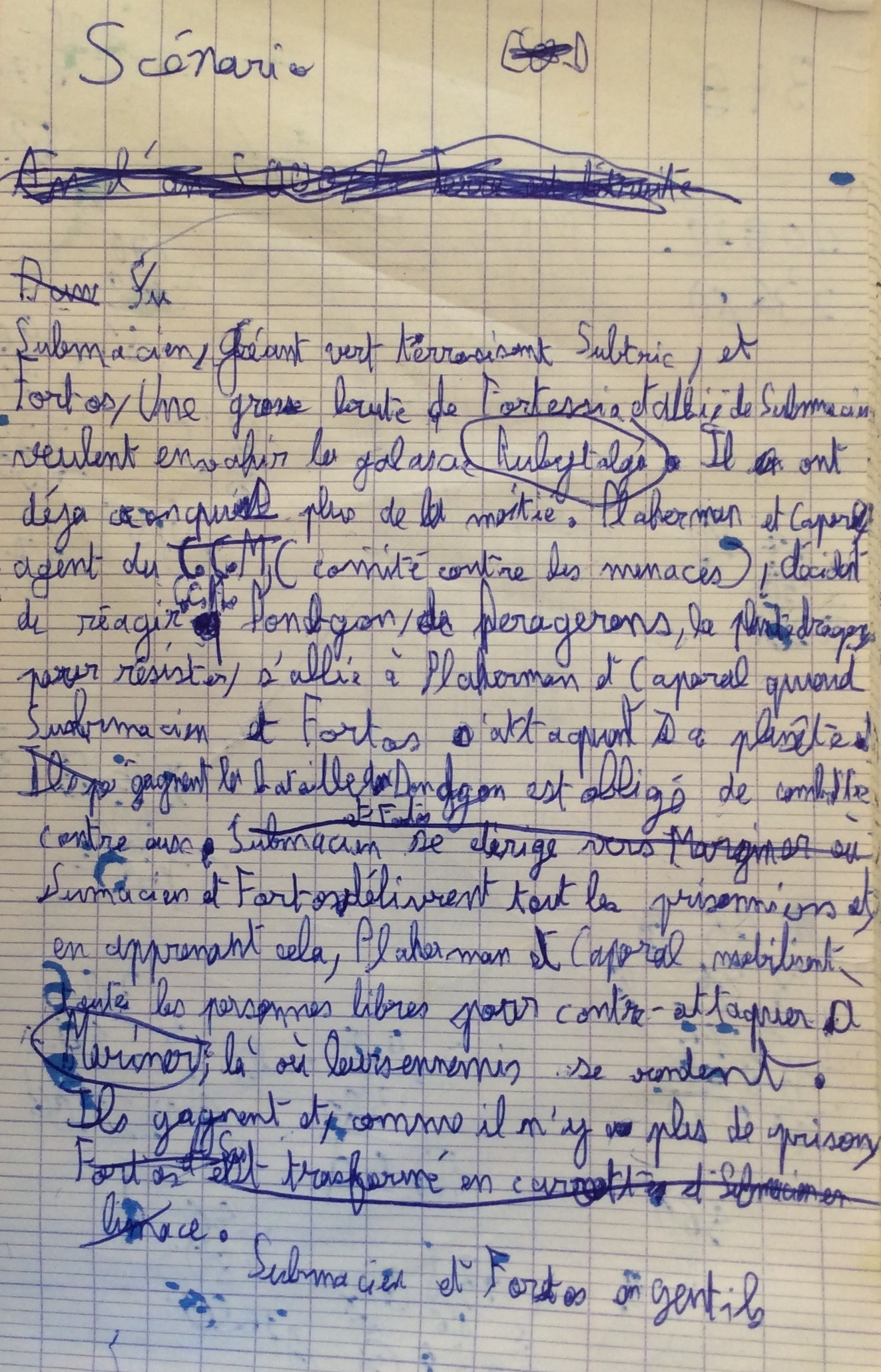 Mais la partie la plus difficile commençait, il fallait écrire le scénario. Ce fut le thème d’une autre production d’écrit. Tous les élèves étaient motivés, tous ont rivalisé d’imagination. Les différentes histoires imaginées ont été lues et un nouveau vote a permis de choisir celui qui allait nous permettre de réaliser notre comic. Bien sur ce scénario a été enrichi pour être le plus complet possible. Toute la classe a donc participé à son élaboration.