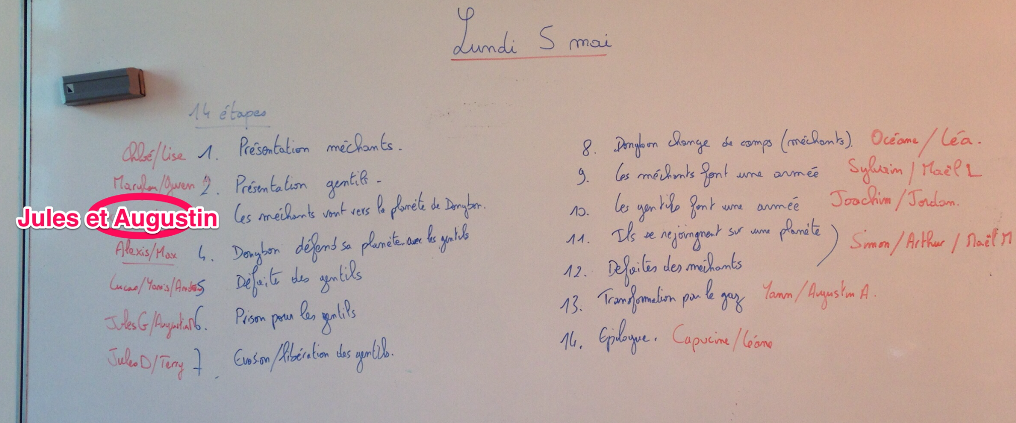 Pour notre histoire, il a fallu en choisir 5. Pour cela, nous avons organisé un vote. C’est la classe qui l’avait décidé, et chacun a respecté le choix final.