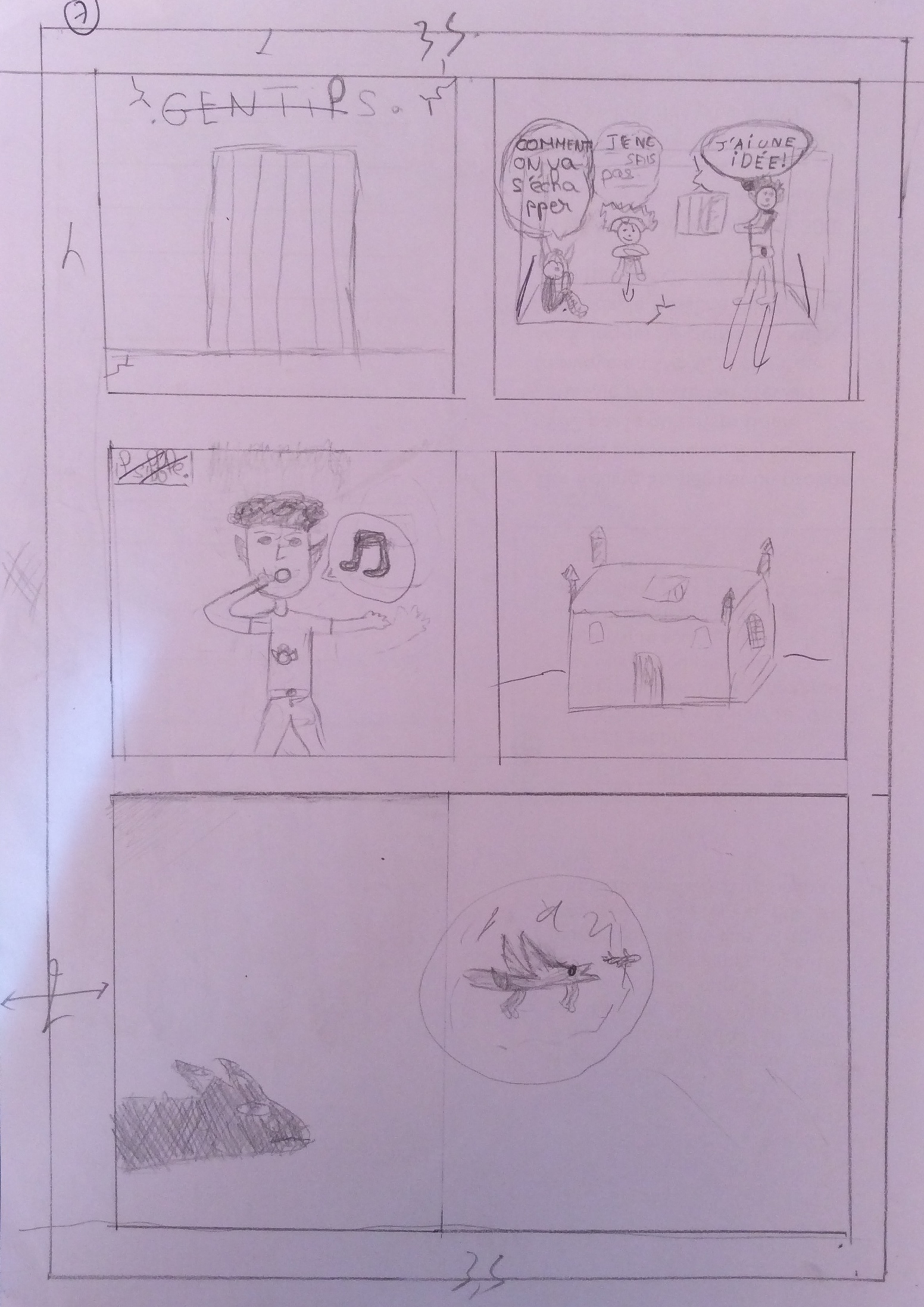 L’étape suivante était la plus difficile. Faire le storyboard. Heureusement, nous avons eu la visite durant une journée entière d’un écrivain/dessinateur/scénariste : Will Argunas. Ce dernier a aidé les élèves à réaliser le storyboard de chaque planche. Ensuite les élèves ont réalisé un brouillon.