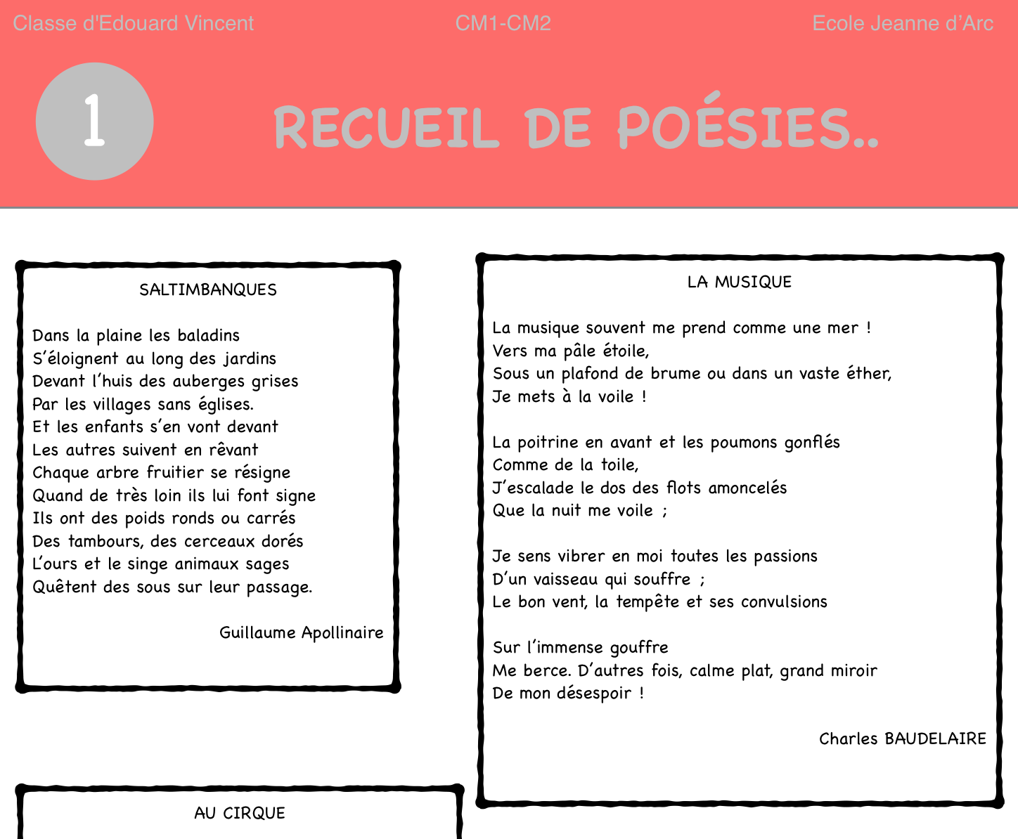 Pour le fonctionnement, c’est assez simple. J’ai donné pour objectif à mes élèves de réciter au moins 10 poèmes dans l’année et, si possible, un par niveau. J’ai aussi précisé que rien n’empêchait à ceux qui auraient envie d’en faire plus.