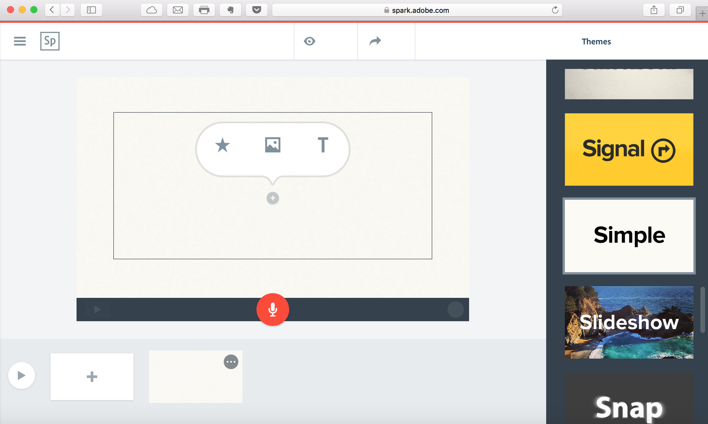 Bonne nouvelle, Adobe a décidé d’ouvrir sa suite Spark à tous, s’en est fini de l’exclusivité d’iOS. Adobe Slate devient Spark Page, Adobe Post devient Spark Post, mais surtout Adobe Voice (ceci est une révolution) devient Spark Vidéo.