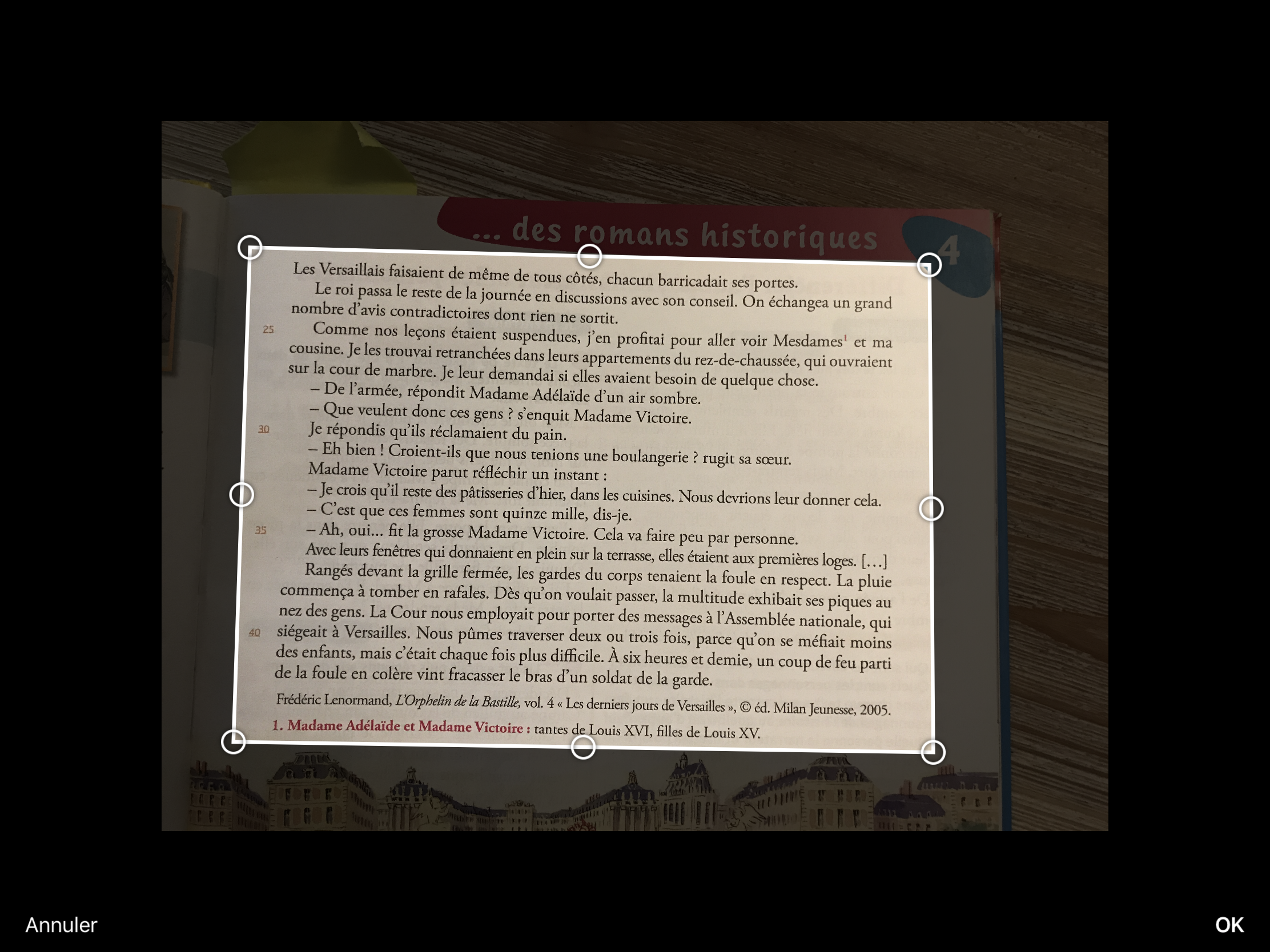 L’application reconnaît seule la zone de texte mais la plupart du temps un petit recadrage s’impose.