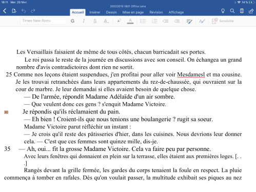 Il me suffit ensuite de « cliquer » (sic) pour ouvrir mon nouveau fichier Word. La mise en page est respectée et on retrouve même les indications de texte.