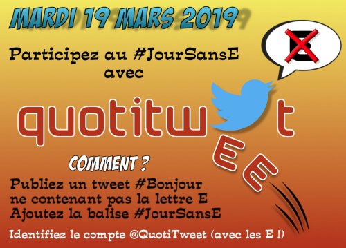 L’équipe QuotiTweet vous propose aussi de les rejoindre sur des actions ponctuelles comme le #JourSansE qui aura lieu le 19 mars. Alors n’hésitez pas et tentez l’aventure !