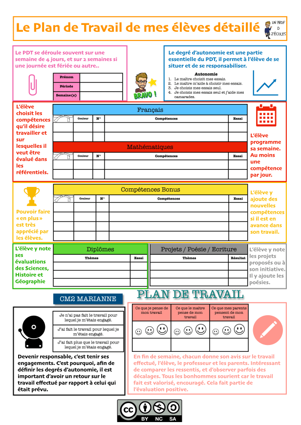 Nous remplissons le PDT parfois le vendredi en classe mais en début d’année, pour impliquer également les parents, je leur demande de le remplir le week-end. Toujours en fonction de leur degré d’autonomie. Un PDT se déroule sur une semaine parfois deux si il y a des événements ou jours fériés.