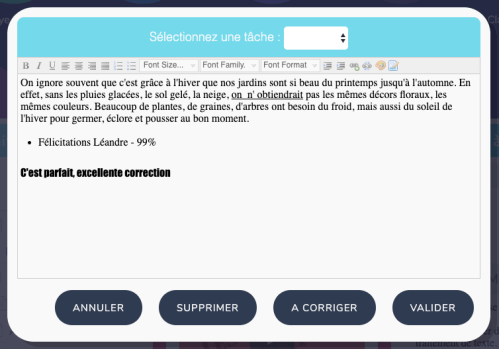 Enfin, même si j’envoie tous les soirs une correction collective aux élèves (pour cela, je stocke tous mes documents dans un dossier Google Drive, puis je partage le lien sur le petit bureau de l’élève), j’ai décidé de faire un petit retour individuel à chaque enfant.