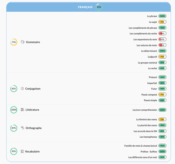Il y a juste une dernière chose, vous savez que j’utilise un gros fichier Numbers pour suivre les résultats de mes élèves. Il faut que je trouve une solution pour arriver à en tirer les résultats d’un seul élève pour pouvoir lui partager sa progression.. C’est en cours avec l’aide de trois copains et j’espère avoir une solution très vite. Et grâce à eux on y est presque (je ne suis vraiment pas bon en Numbers). Pour l’instant, on arrive à avoir un récapitulatif dans un domaine pour un élève.