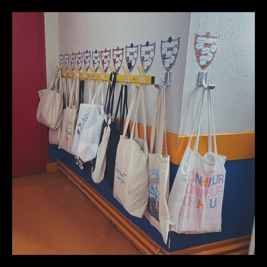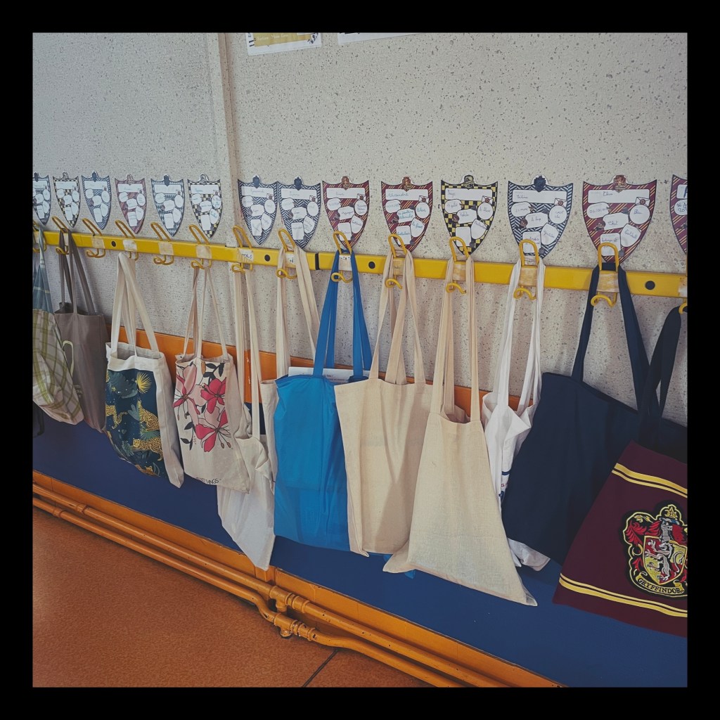 En fin d’année dernière, j’ai testé deux dispositifs. J’ai supprimé les casiers individuels déportés que j’ai remplacé par des casiers collectifs (par maisons, étant en classe Harry Potter) et je les ai couplés à des tote-bags. Et ce sont ces derniers qui ont tout changé.