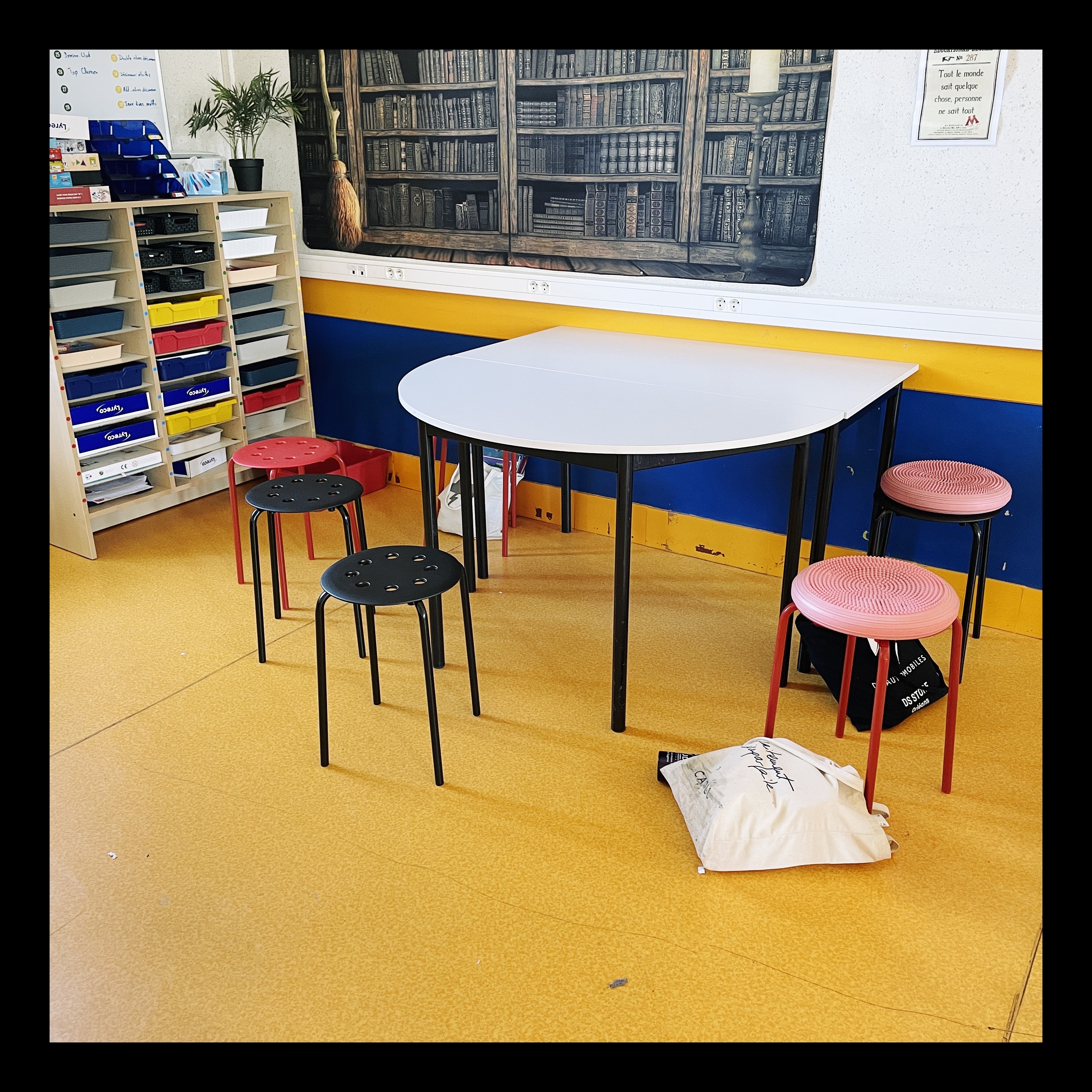 Les tables « non conventionnelles », avec des formes et motifs que je n’ai jamais vu dans aucune autre école. Peut-être étaient-elles déjà là ?