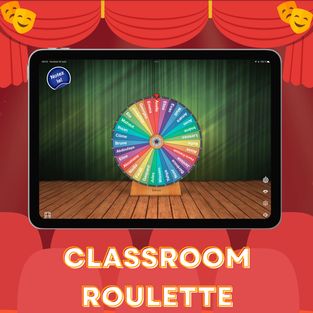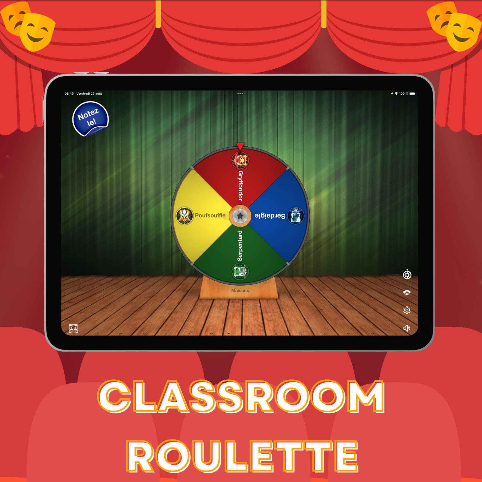 Comme vous le voyez on peut mettre des mots, des photos ou les deux. On affiche 1 roulette ou 2 ! Ici une utilisation pour tirer au sort un élève, une maison ou faire un exercice de conjugaison avec un verbe + un temps.